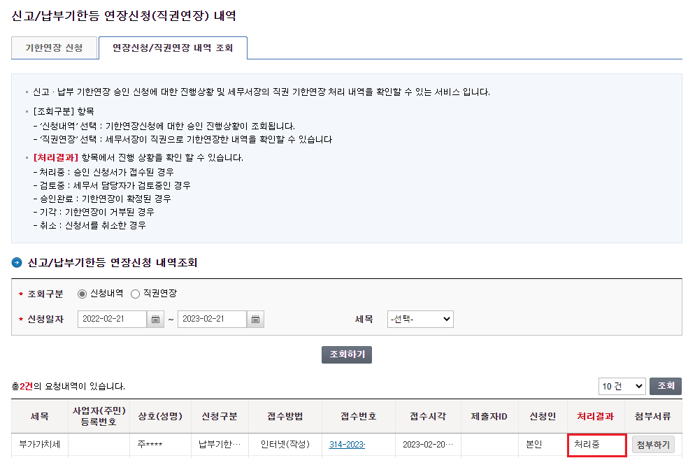 2일~3일 정도 후에도 승인완료가 되지 않는 경우가 있는데요, 최근 부가세 납부 연장신청건이 많아 담당 공무원의 업무가 과중할 수 있으니 며칠 더 기다려보거나 담당 세무 공무원에게 직접 문의를 해도 됩니다.